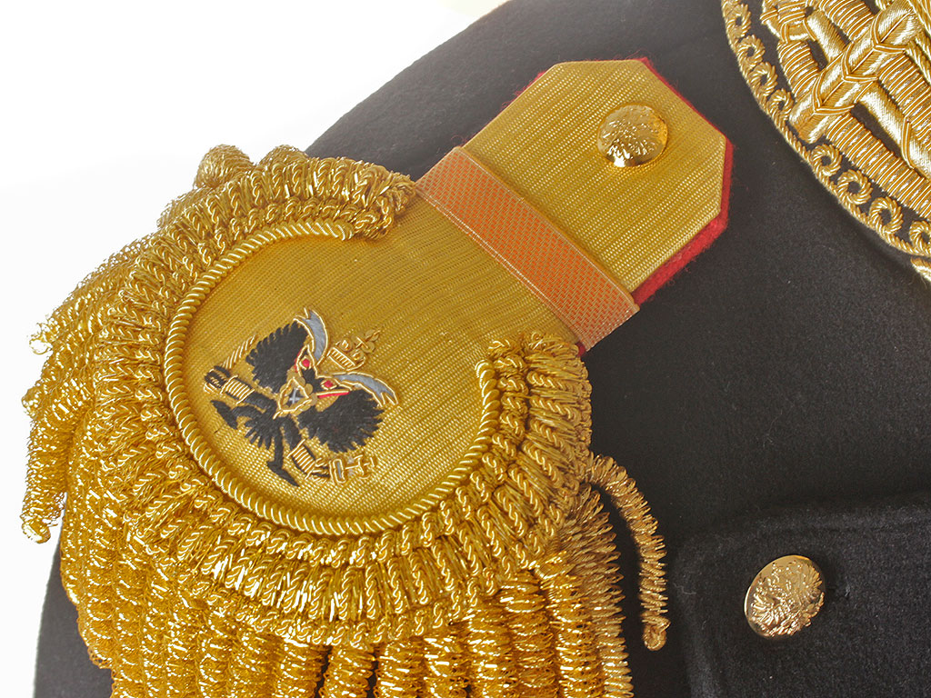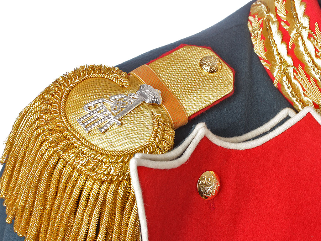 Эполеты гвардейского типа штаб-офицерские с бахромой. Золотое тканое поле, малино...