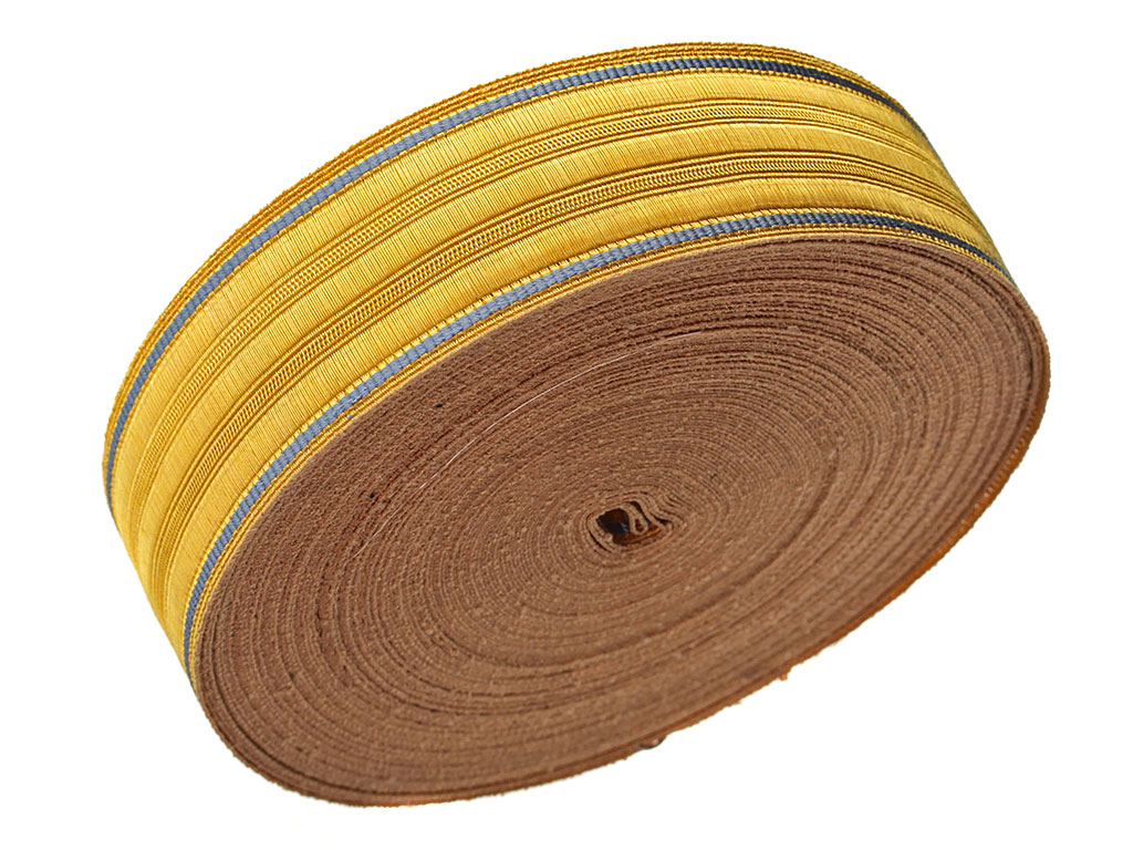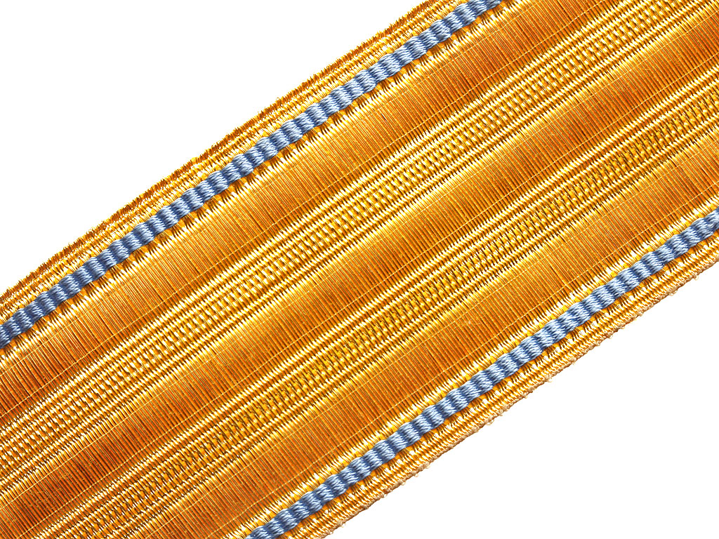Золотой галун с тонким голубым просветом, ширина галуна 35 мм.