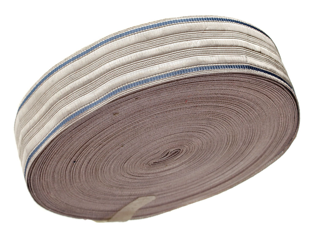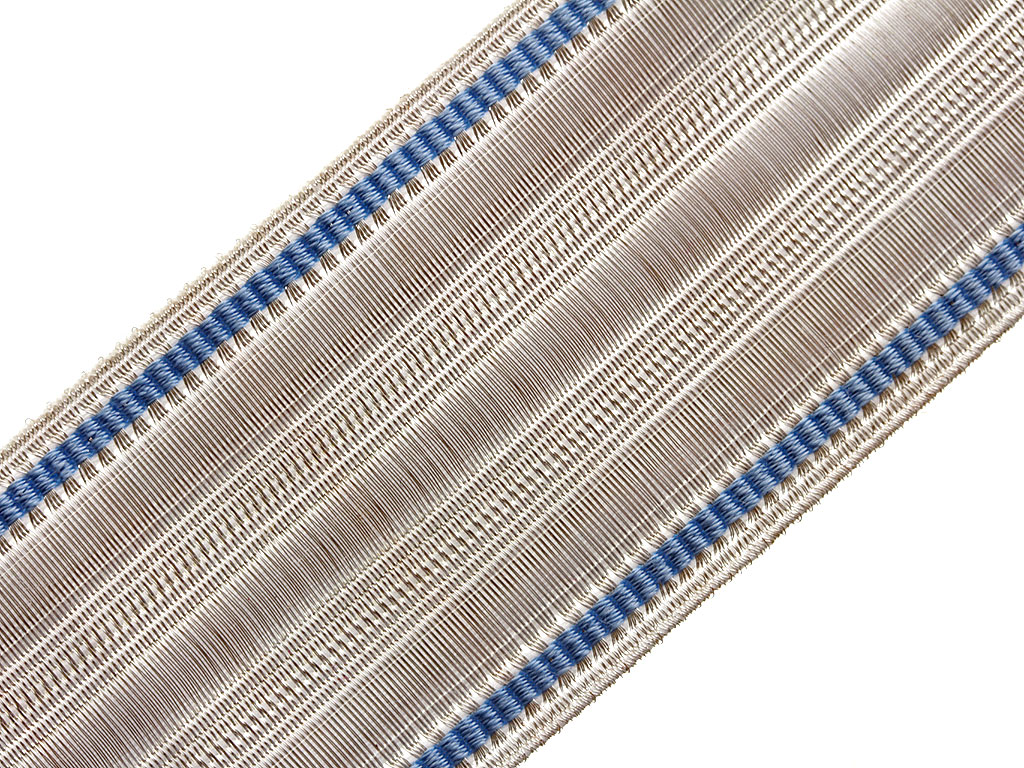 Серебряный галун с тонким голубым просветом, ширина галуна 35 мм.