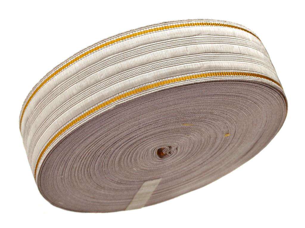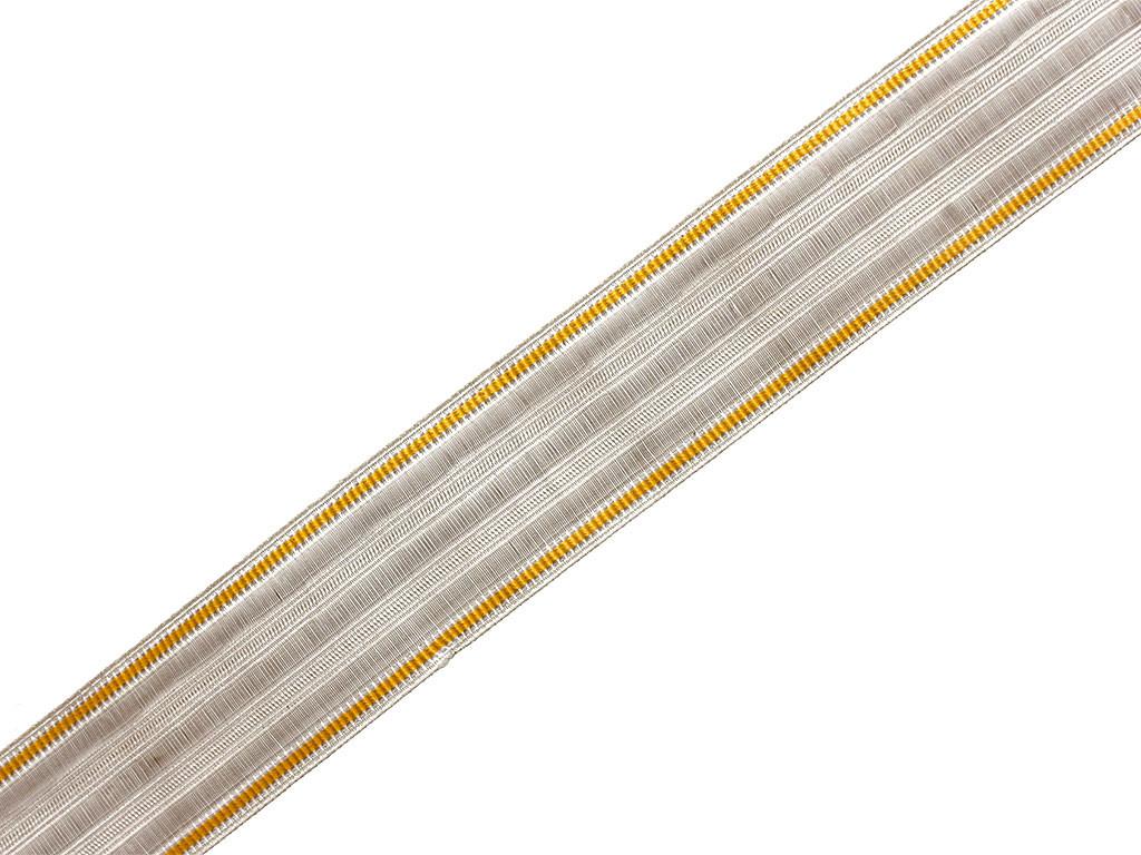 Серебряный галун с тонким желтым просветом, ширина галуна 35 мм.