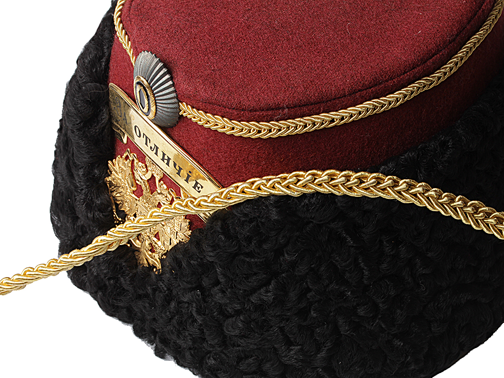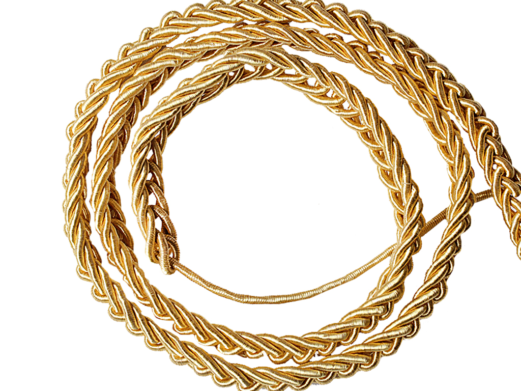 Качественная копия, золотая металлическая нить. Шнур овального сечения, максимальная ширина - 9 мм. На дополнительном фото шнур показан в сравнении с более поздним шнуром периода Александра III - Николая II.