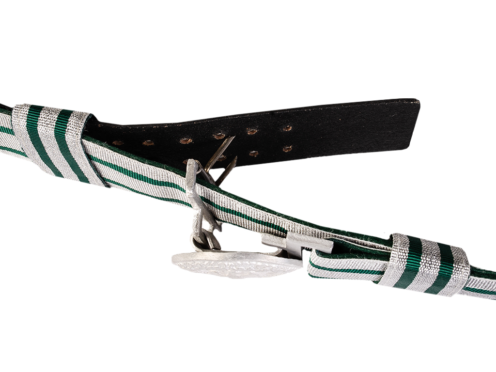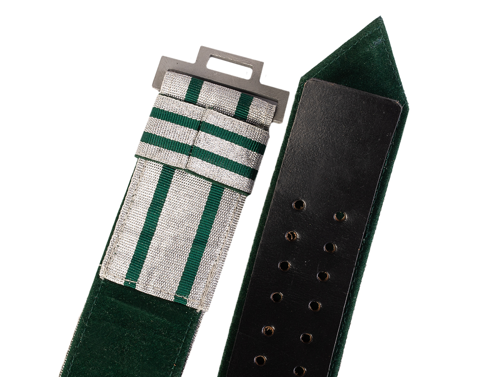 Парчовые парадные ремни позднее были разрешены для ношения служащими офицерского ранга. Парчовый ремень имел бархатный или плюшевый задник, чтобы предотвратить скольжение. Отделка парчи следующая: 9-мм алюминий, 5-мм синевато-зеленый, 15-мм алюминий; 5-мм синевато-зеленый; 9-мм алюминий. Ремни, носимые суперинтендантами имели красные полоски, а не синевато-зеленые.