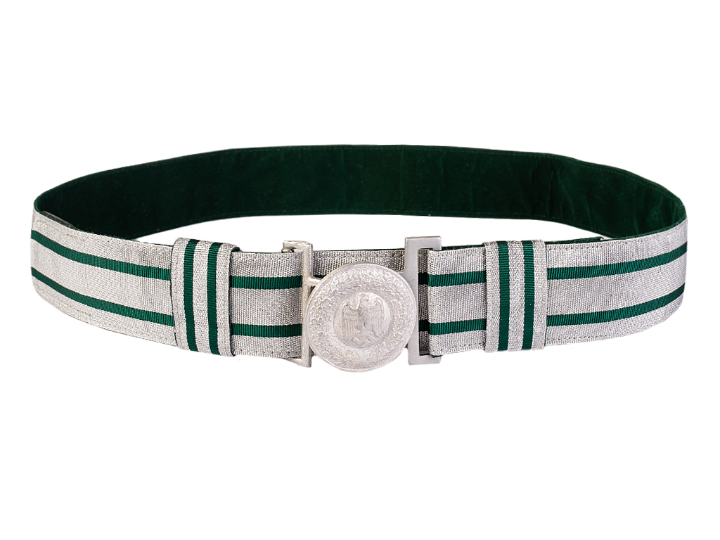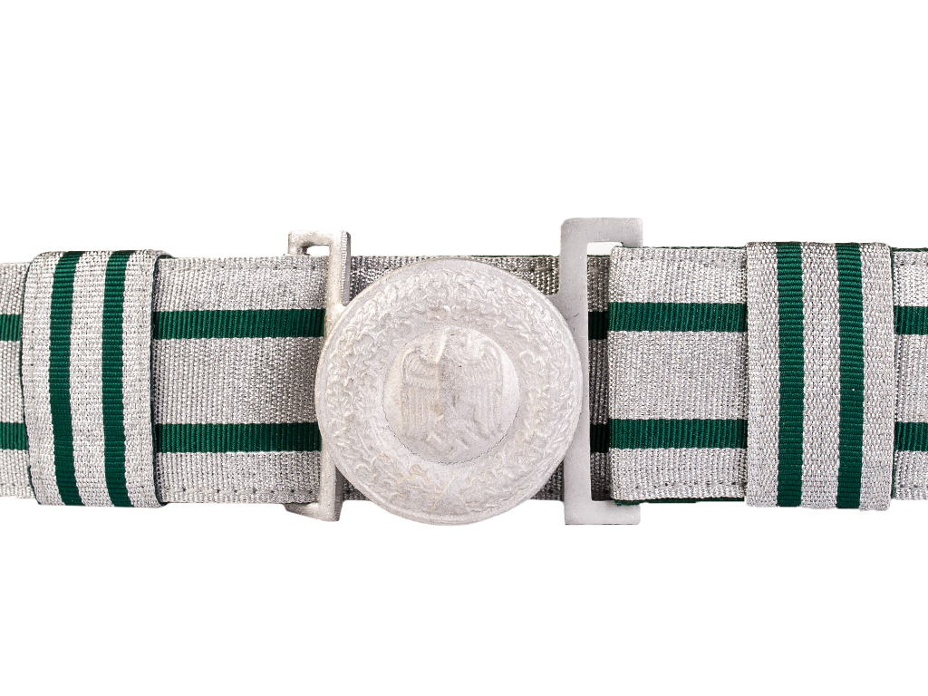 С 1937 года для парадного парчового ремня изготавливалась специальная круглая пряжка, штампованная из светлого металла с матовой полировкой – либо естественно тусклая, либо покрашенная в тускло-серый. Центральный мотивом пряжки является орел Вермахта с головой, повернутой на его правую сторону. Он окружен полным в 10 мм шириной венком из дубовых листьев, и соединен у основания перекрещенной лентой. Пряжки различались цветом в зависимости от звания офицера. Пряжку матового светлого металла носили от лейтенанта до полковника, а матовую позолоченную или анодированную – генералы. В редких случаях, на усмотрение генералов, золотая генеральская пряжка могла крепиться к черному или коричневому 45-мм кожаному ремню. Это не распространялось на младших и старших офицеров. Пряжка с идентичным узором, но перекрашенная в оливково-коричневый цвет, носилась офицерами с оливково-коричневым брезентовым ремнем с тропической униформой. Пряжка с идентичным узором, но перекрашенная в оливково-коричневый цвет, носилась офицерами с оливково-коричневым брезентовым ремнем с тропической униформой.