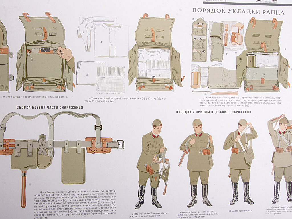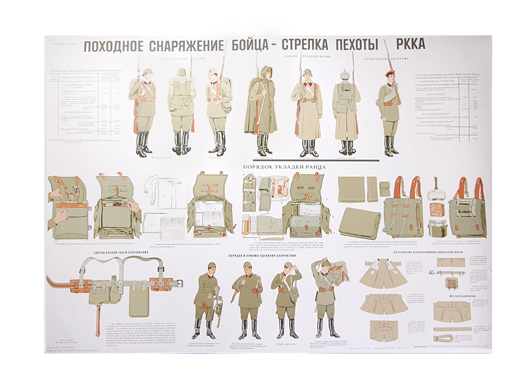 Плакат "Походное снаряжение бойца-стрелка пехоты РККА". Современный репринт с оригинального плаката 1936 года.