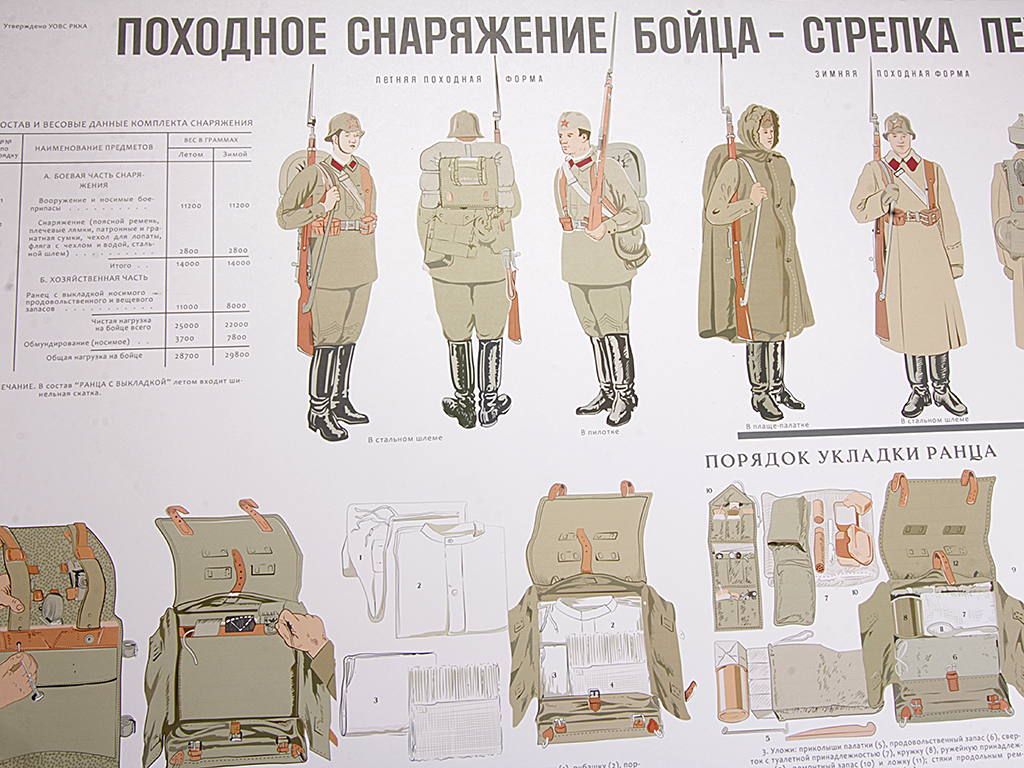 Плакат "Походное снаряжение бойца-стрелка пехоты РККА". СССР, копия