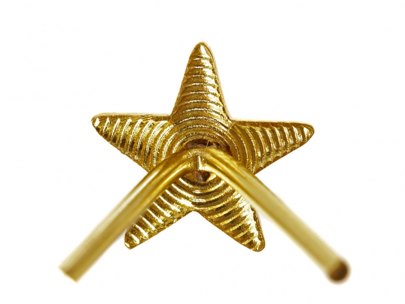 Металлическая звездочка на офицерские погоны. За образец при изготовлении взята оригинальная звезда, копия полностью повторяет оригинал: рифленая, рельефная, с чуть скругленными кончиками лучей.