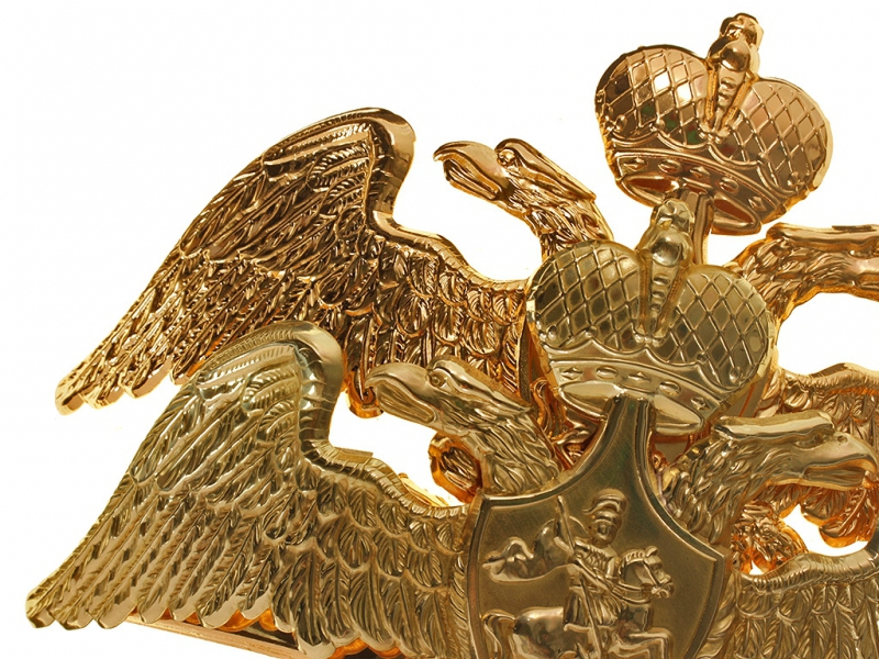 Представленный орел почти полностью повторяет Государственный герб Российской империи, установленный при Императоре Александре I. Он украшал не только элементы военной униформы, но и государственные учреждения, ценные бумаги, монеты. Его еще называют "орлом с опущенными крыльями" и "масонским" орлом.