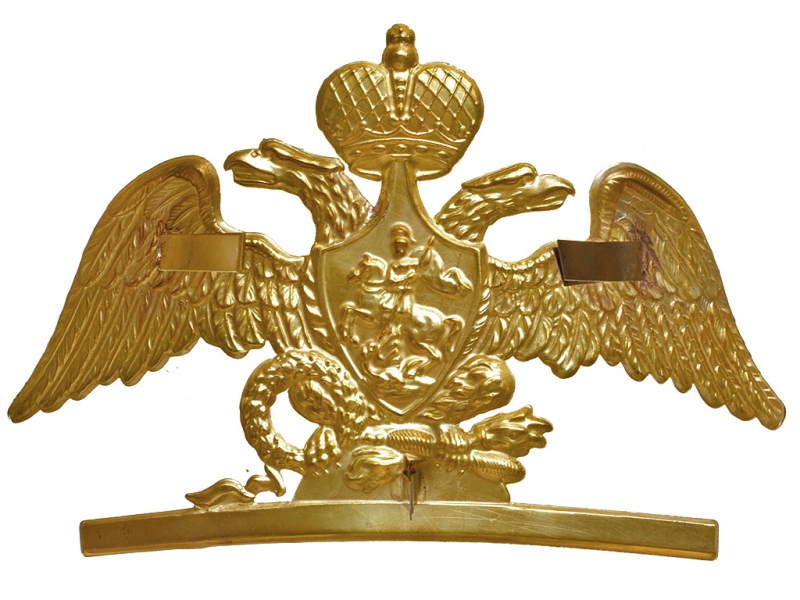 Латунный штампованный орел гвардейского типа образца 1808 года для нижних чинов русской гвардейской пехоты и Лейб-гвардии Гусарского полка.