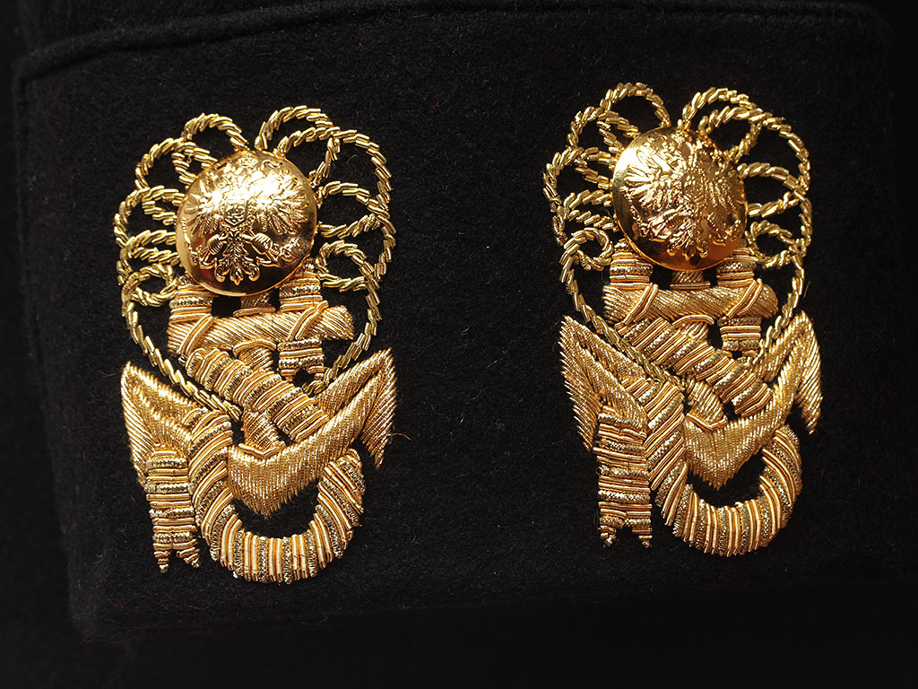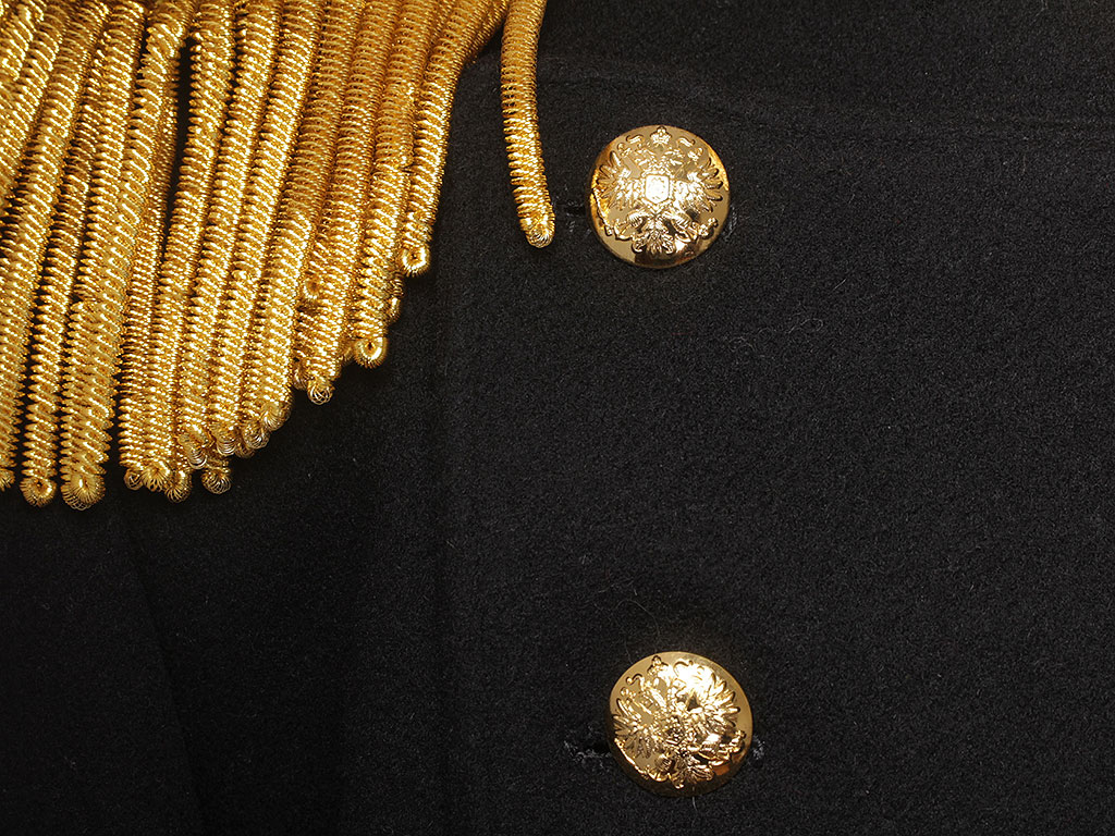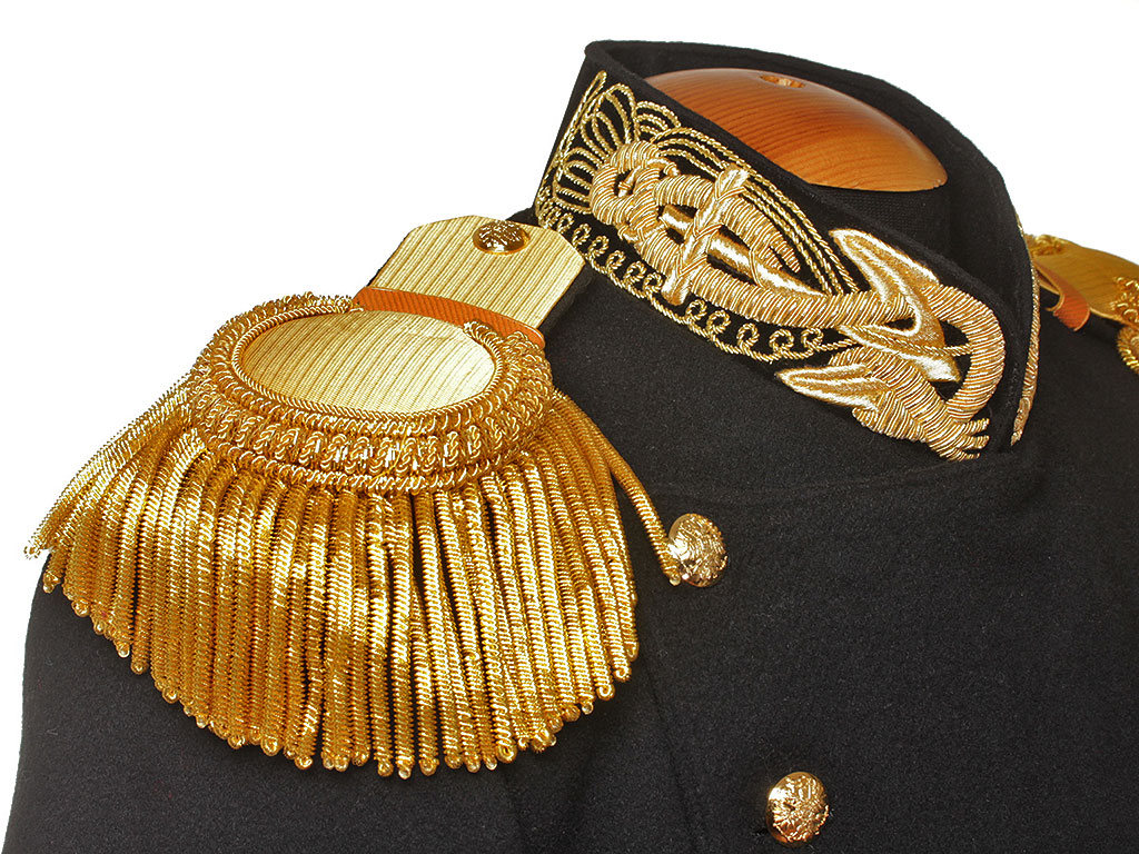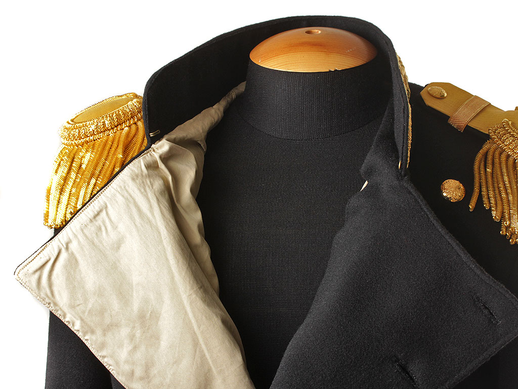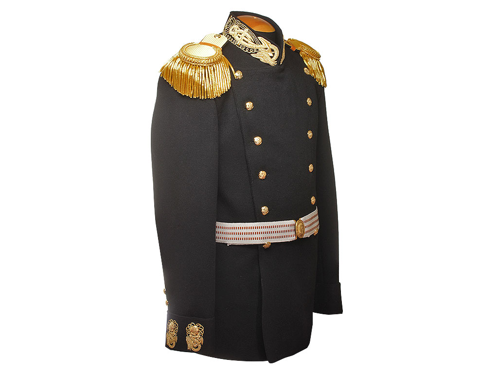 В качестве образца представлен морской мундир с эполетами Капитана 1 ранга Императорского флота.