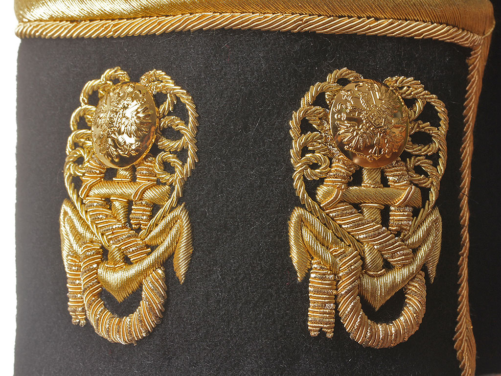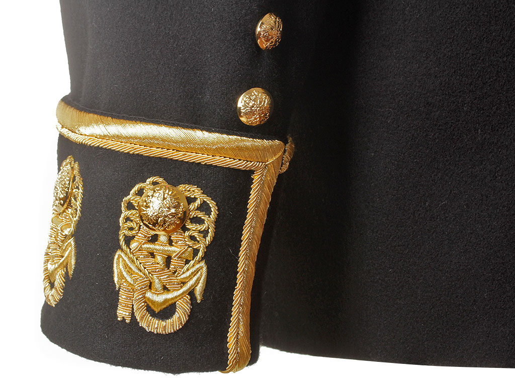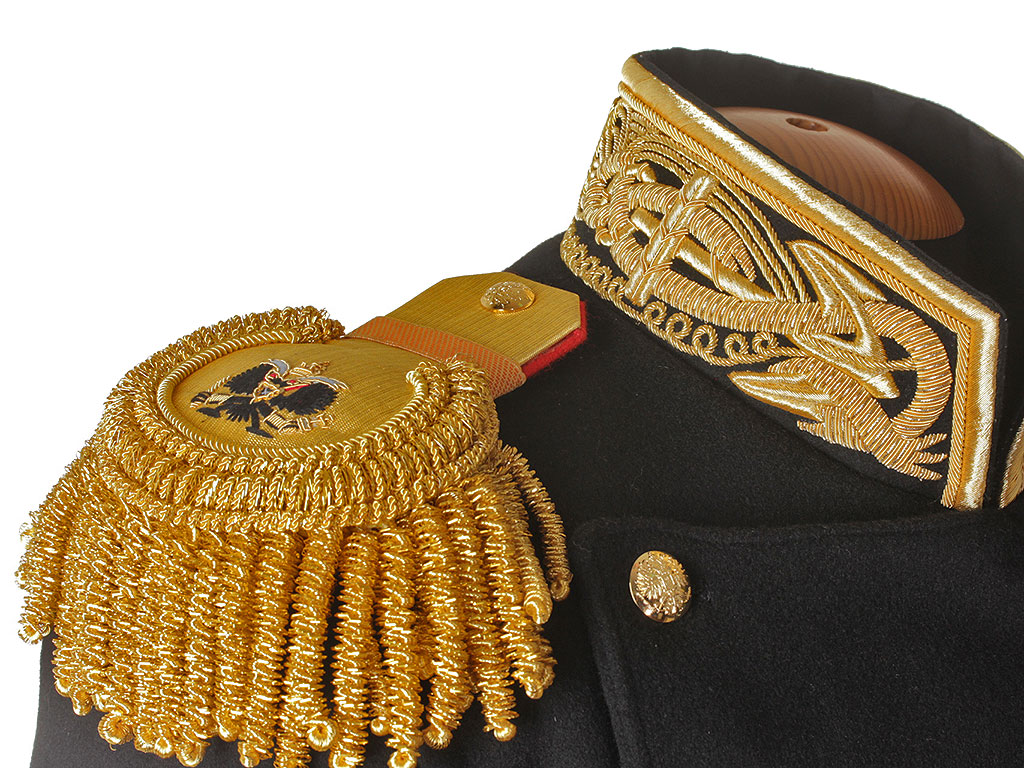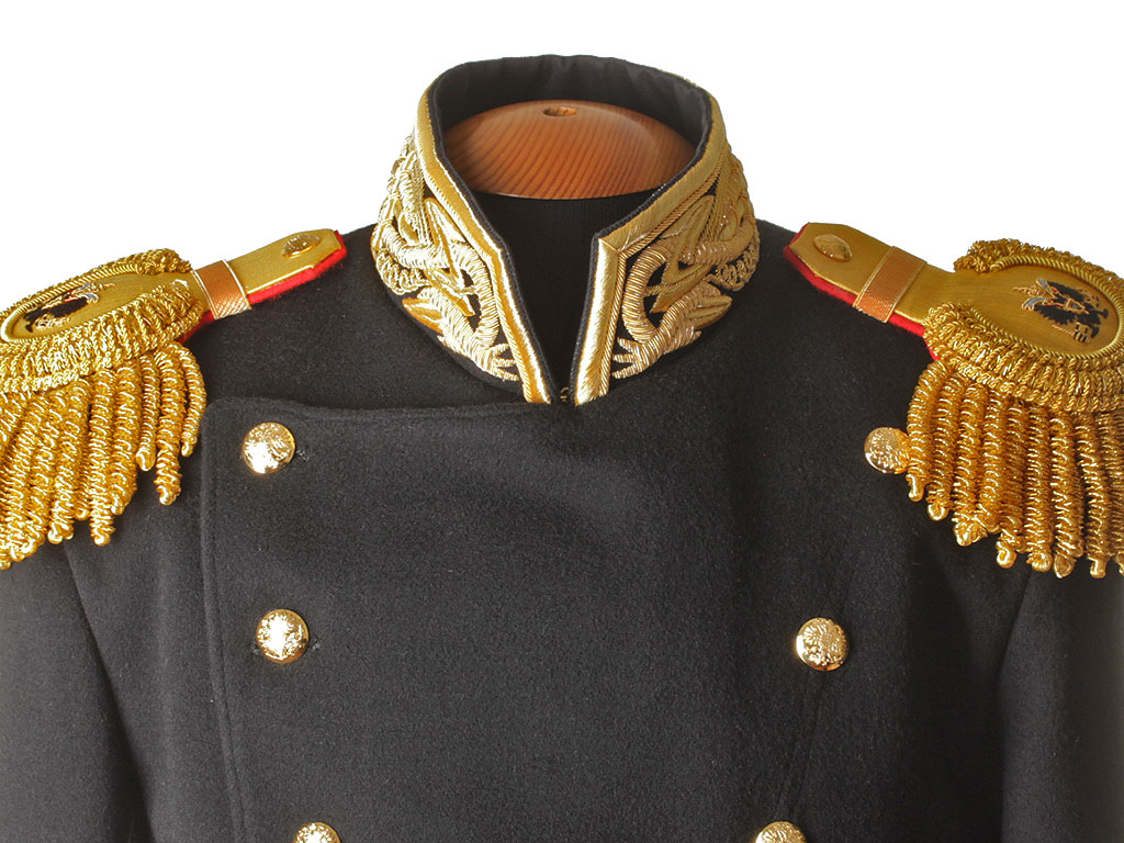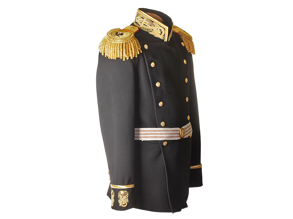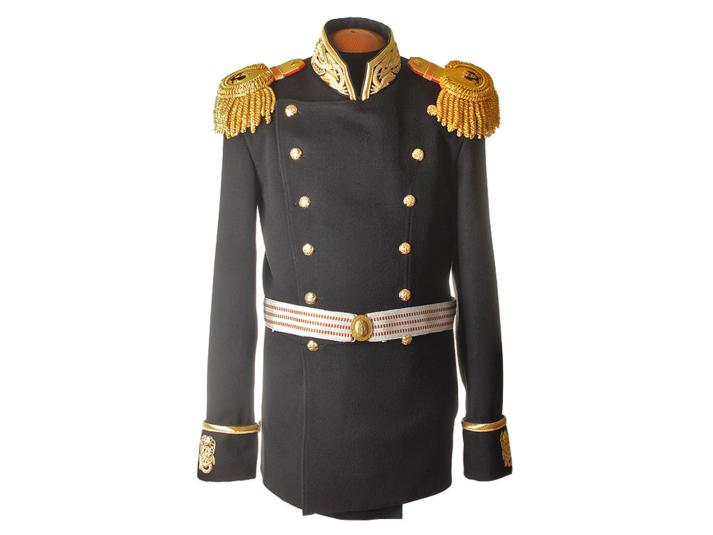 В качестве образца представлен морской мундир с эполетами контр-адмирала Гвардейского экипажа Императорского флота.