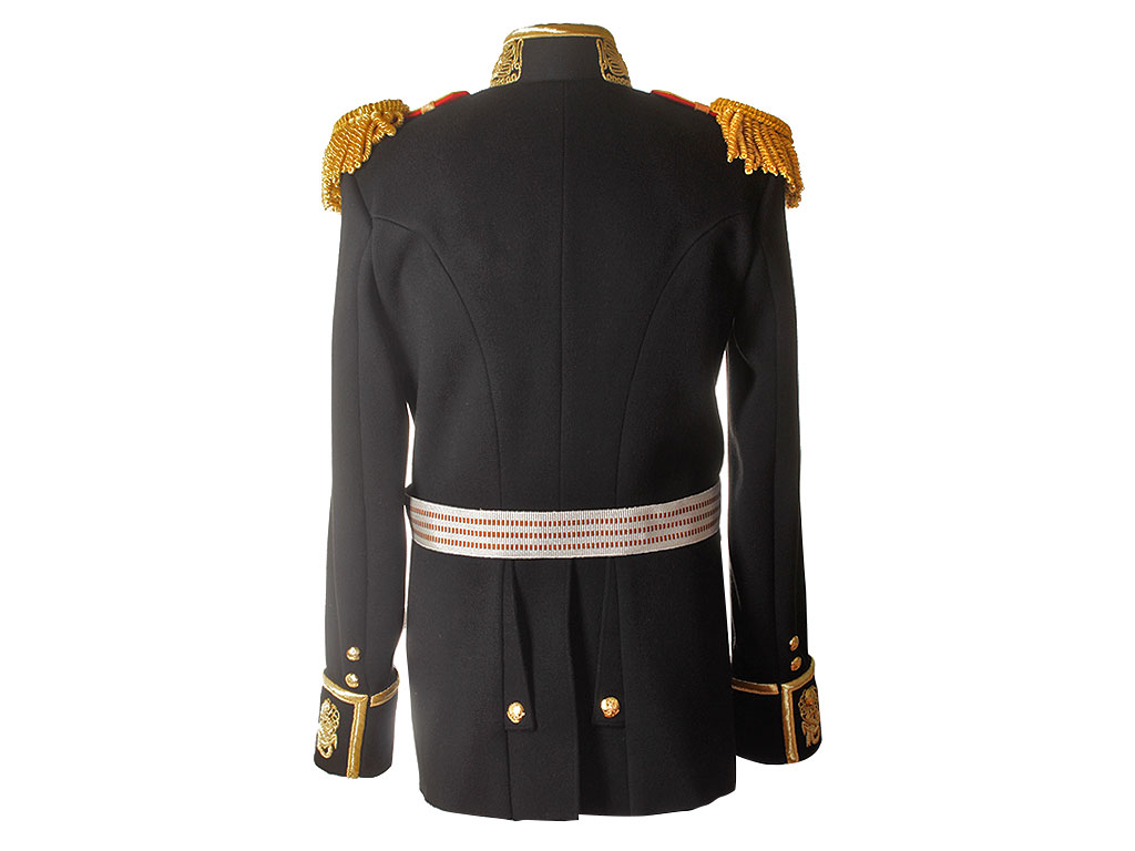 Покрой мундира двубортный, со стоячим воротником. Сам мундир застегивается на 22-мм пуговицы.