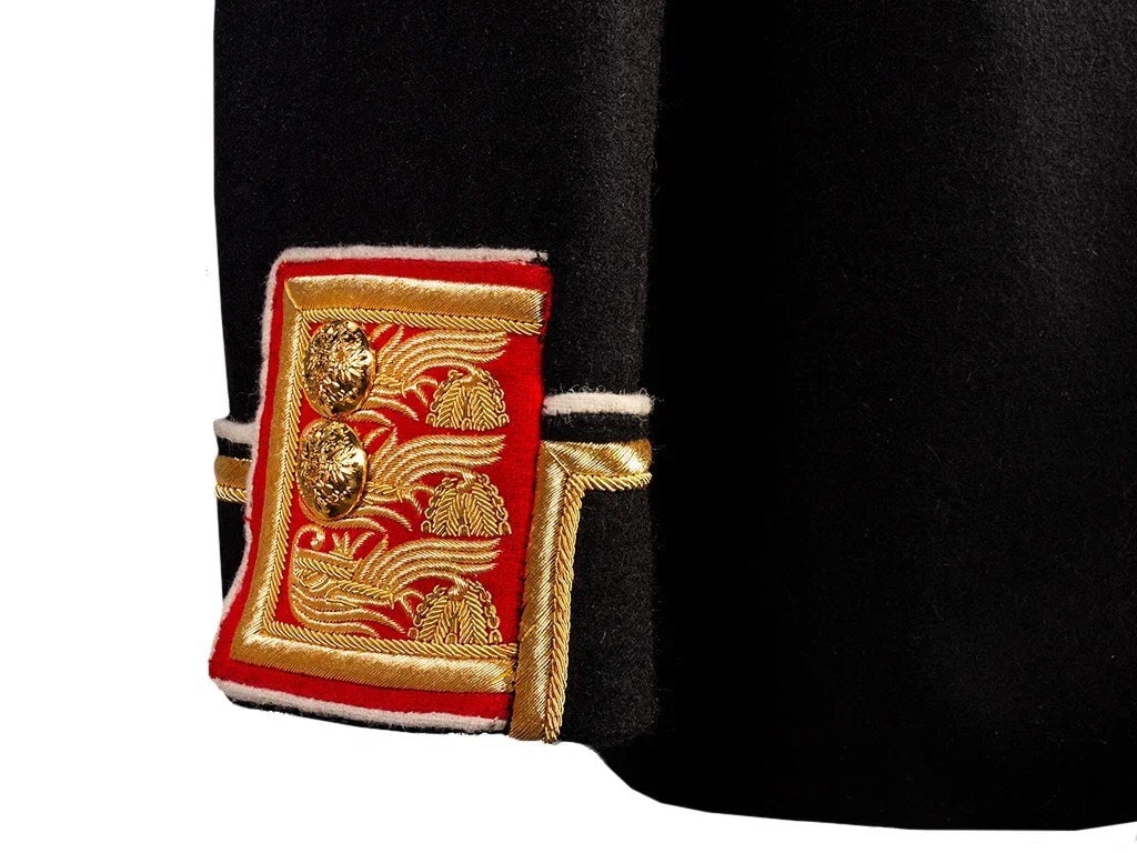 Такие мундиры полагались чинам Свиты Его Императорского Величества при свитской форме Морского Ведомства (Приказы Морского Ведомства 1884 года №15, 1899 года №83).