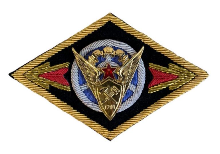 Нарукавный знак начсостава ГАИ (предположительно образец 1936 г.), представляет собой ромб из черного бархата, окантованный полосой из золотой канители. Посередине ромба располагался круг, вышитый бирюзовым шелком, на котором серебряной канителью вышивалось рулевое колесо автомобиля. По обе стороны круга горизонтальные конические стрелки, вышитые красным шелком и окаймленные по наружному краю золотой канителью.
