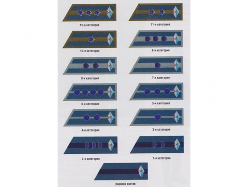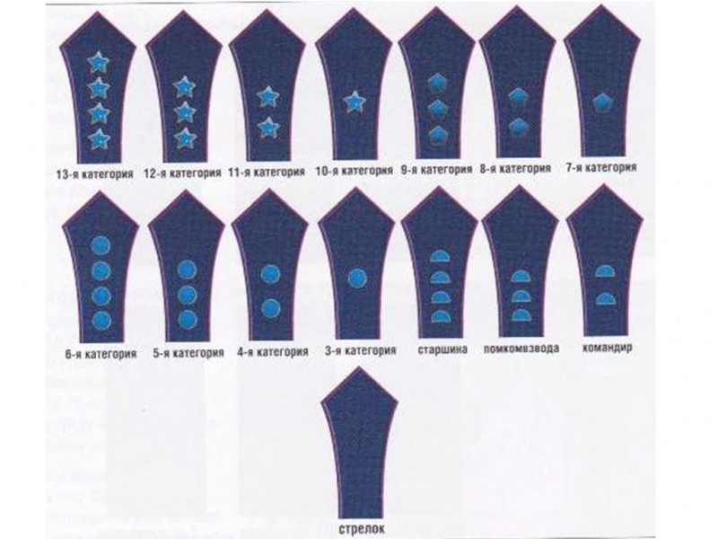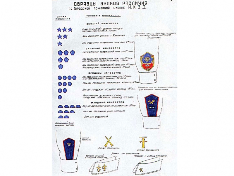 Синие круги - нарукавные и петличные знаки различия среднего начальствующего состава городской пожарной охраны НКВД (начальники дежурных смен городских пожарных команд 4 разряда, начальники городских пожарных команд 3-го, 4-го и 5-го разрядов).